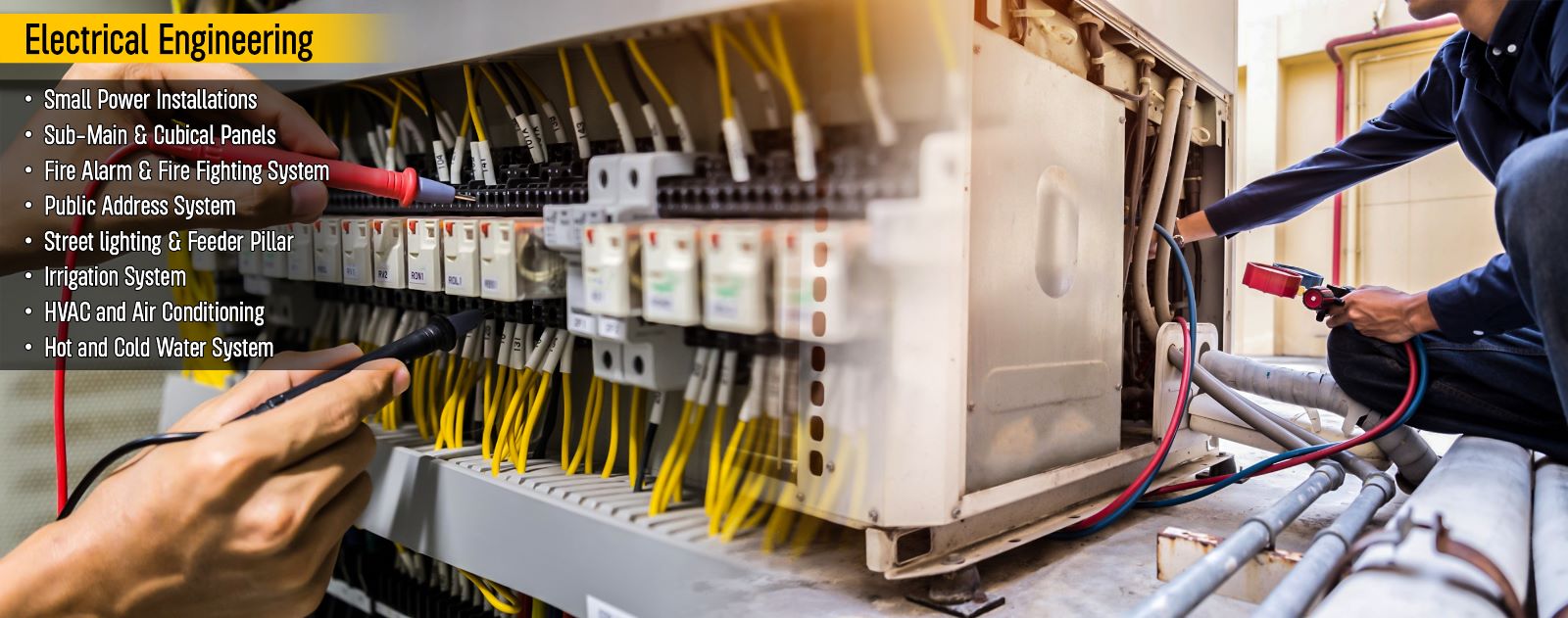 AL MILLION's MEP Division do turnkey solutions including a design, supply, installation, testing & commissioning of Fire Fighting System, Fire Alarm System, Electrical Works, Plumbing Works.
